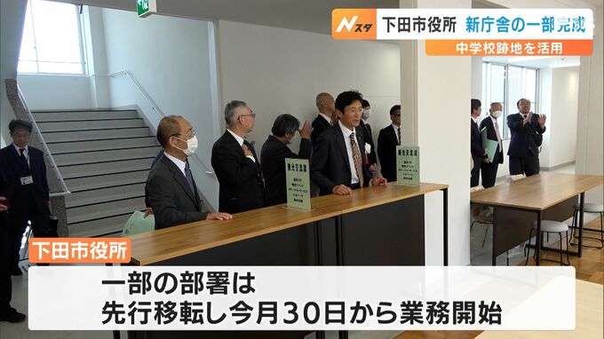 下田市役所新庁舎の一部が完成し記念式典 学校跡地を活用=静岡・下田市 2024年4月21日(日) 18:42 国内 2026年の庁舎完全移転を目指す静岡県下田市では、工事の一部が完了したことを受け、記念式典が行われました。下田市役所の新庁舎は、廃校となった稲生沢中学校の跡地を活用して建設され、4月21日、記念式典が行わ…