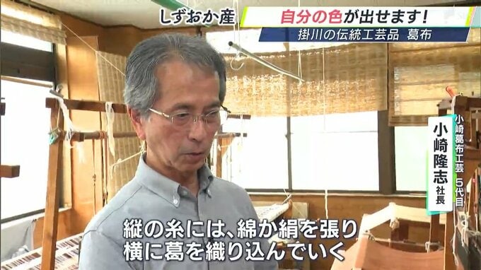今回のしずおか産は、副市長も愛用する「掛川葛布」の名刺入れです。手がけるのは、城下町・静岡県掛川市の特産品「葛布」を扱う「小崎葛布工芸」。創業は明治時代。150年以上もの歴史がある名店です。