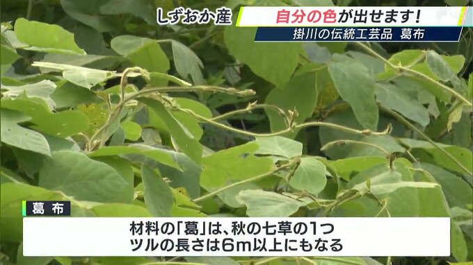 葛布は鎌倉時代から生産が始まったとされ、800年以上の歴史を持つ伝統工芸品です。材料となる「葛」は、マメ科の植物で秋の七草の一つです。ツルの長さが6m以上にもなります。