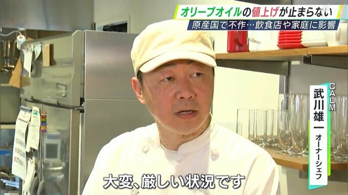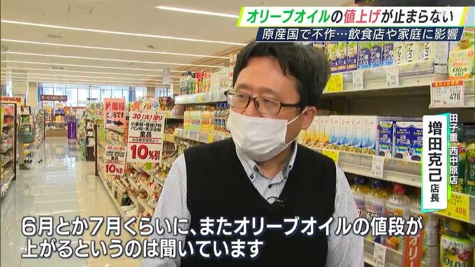 「6月とか7月くらいに、またオリーブオイルの値段が上がるというのは、聞いています。そういう意味では、不安があります」