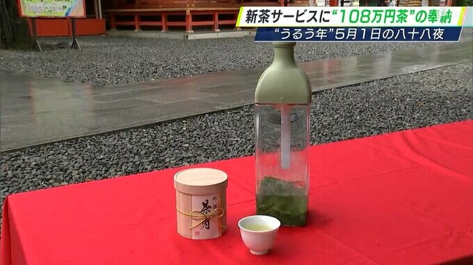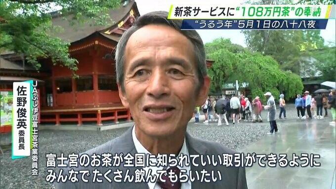 富士宮市の富士山本宮浅間大社に奉納されたのはは、なんと1キロ108万円で落札された新茶。淡い緑色が美しい地元・富士宮産の手揉み新茶です。