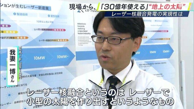 「レーザー核融合というのは、レーザーで太陽、小型の太陽を作り出すというようなものになります」