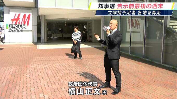 2024年の大型連休は静岡県知事選告示前の最後の週末となり、各陣営が県内を駆け回り、支援集めに奔走しました。重点エリアを精力的にまわりアピール合戦です。