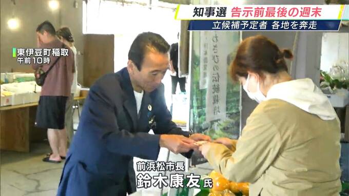一方、前の浜松市長の鈴木康友氏は県東部エリアを重点的にまわり、知名度アップを図ります。6日は、伊豆で労働組合のイベントに参加。