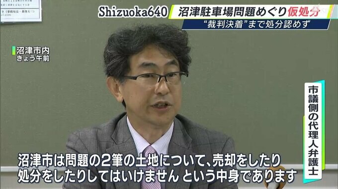 「処分禁止の仮処分自体は、この裁判、正式裁判が決着はつくまで沼津市は、問題の2筆の土地について、売却をしたり、処分をしたりしてはいけませんという中身であります」