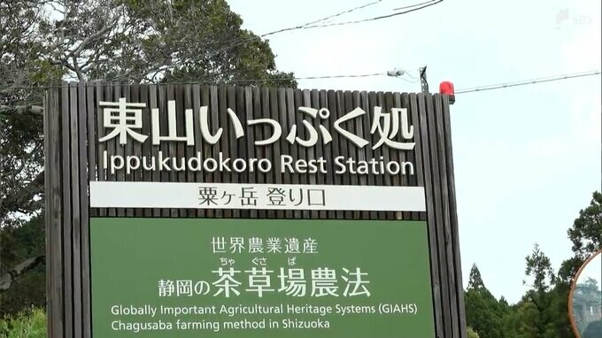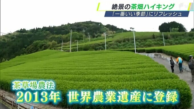 「このあたりは茶草場農法。2013年に世界農業遺産に登録されました」
