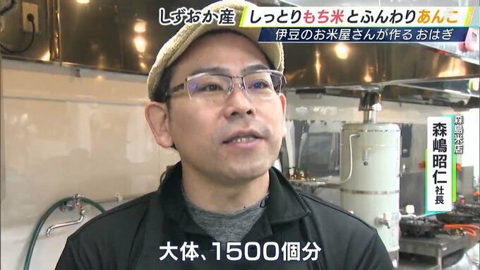 「今日はもち米で30キロぐらい、小豆で40キロ分ぐらい、おはぎに炊いてます。だいたい1500個分ぐらい」