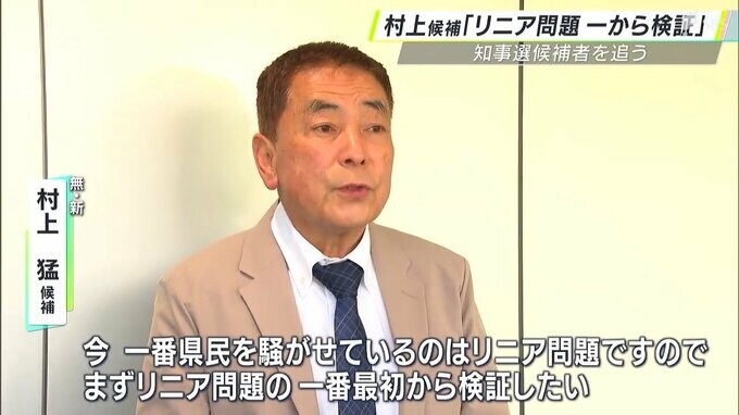 村上猛氏は、リニア中央新幹線の計画を根本から見直したいと訴えています。川勝知事の辞職を受けて出馬を決意しました。選挙活動は、政見放送のみとしています。