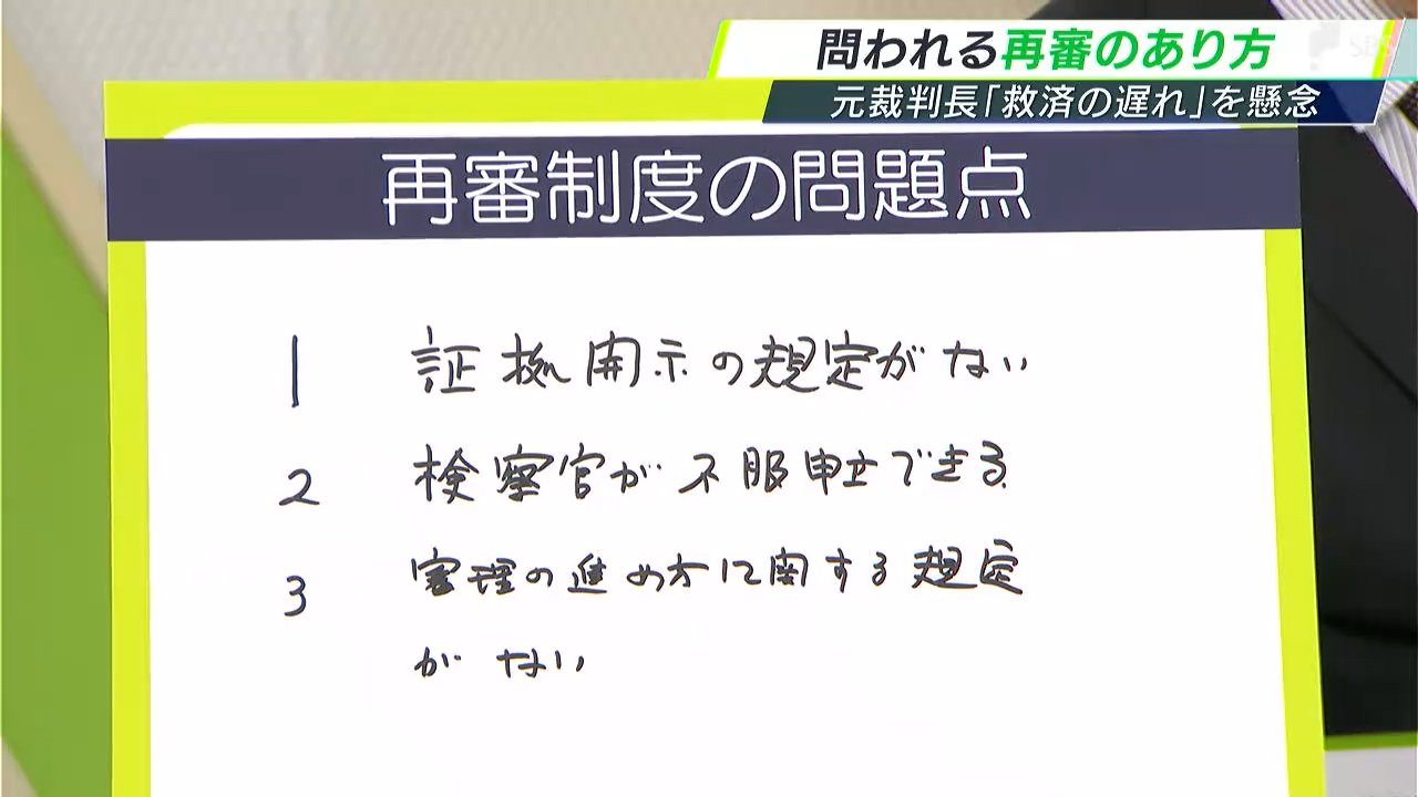 「抗告した分、時間が遅れて救済が遅れる。再審の場合はですね、現に受刑してるとか、犯罪者ということで見られてるという状態が続くわけですから、冤罪被害を拡大してるんですよね。検察官としては、どうしてもそういう制度がある以上は抗告をするという趣になるんでしょうから、これはもう制度の問題として禁止なきゃいけないと思います」