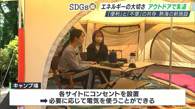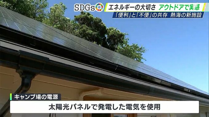 熱海市でソーラーパネルの施工を手掛ける会社が4月、アウトドア施設をオープンしました。「便利さ」と「不便さ」を実感してSDGsについて考えてもらうきっかけになる場所を目指しています。杉本真子アナウンサーが体験してきました。