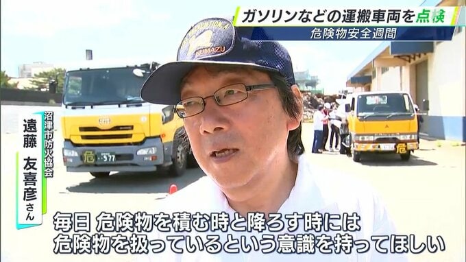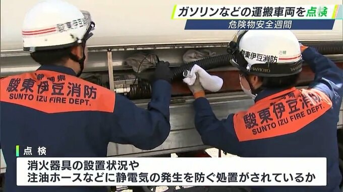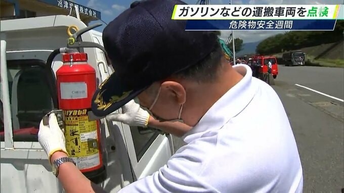 6月2日から8日は、石油類など危険物への理解を深める「危険物安全週間」です。4日、静岡県沼津市では、防火協会などが、ガソリンや軽油などを運搬する車両の点検を行いました。