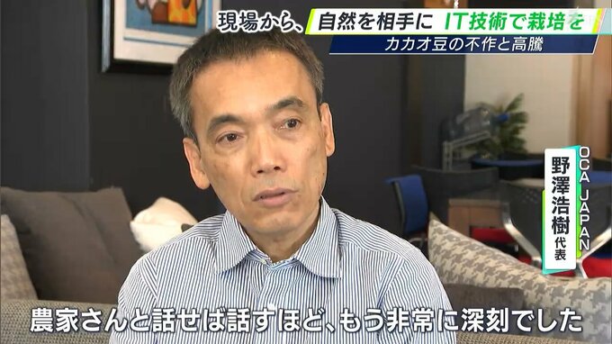 「農家さんは、みんな収穫したラグビーボールよりも、少し小さいくらいの大きさのカカオを、一輪車であったりとか、背中に背負ってとか、籠に入れて運んだりとかしているんですよね。農家さんと話せば話すほど、もう非常に深刻でした」