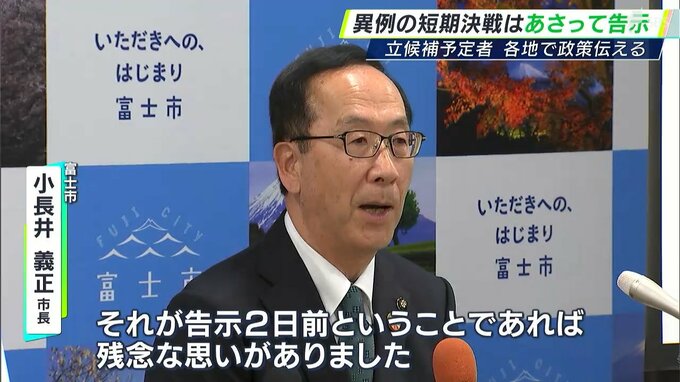 「(鈴木氏)東部に力を入れるのであれば、いち早く調整をしていただいて、富士市にも来ていただければという思いがありましたので、それが告示2日前ということであれば残念な思いがありました」