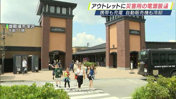 電源設備が登場したのは、年間1,000万人が訪れるという国内最大のショッピングモール御殿場プレミアム・アウトレットです。