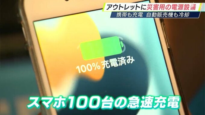 普段は、来場者の携帯電話の充電もできるように利便性を向上させながら災害時にも非常用電源として機能する今回の仕組み。