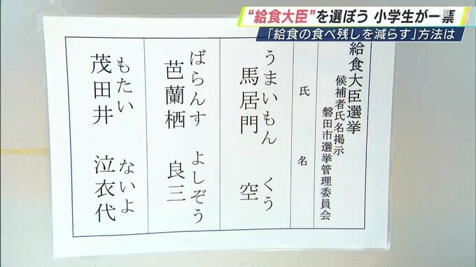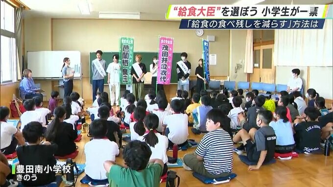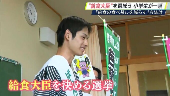 静岡県磐田市の小学校で開かれたのは、選挙の仕組みや投票の意義について学ぶ特別授業です。静岡産業大学の学生が講師となって、「給食大臣」を決める選挙に立候補し、「給食の食べ残しを減らす方法」について子どもたちに訴えました。