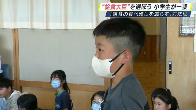 選挙の仕組みについて学ぶ小学校の特別授業で、子どもたちが「給食の食べ残しを減らす」給食大臣を決める選挙を体験しました。