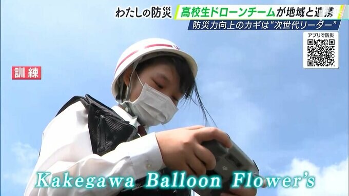 5月に行われた掛川市の水防訓練です。市内の川が氾濫し、一部の地域が孤立した想定で行われました。会場でひときわ注目を集めていたのが、高校生で構成するドローン防災航空隊、「Kakegawa Balloon Flower’s」です。