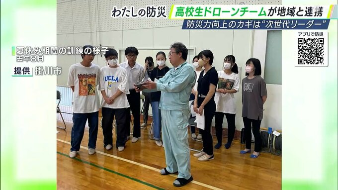 災害が起きた際、被害状況をいち早く把握するために、ドローンの重要性は高まっています。掛川市では静岡県内で唯一、防災のための高校生ドローンチームが活動し、地域との連携を強化しています。