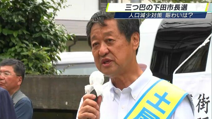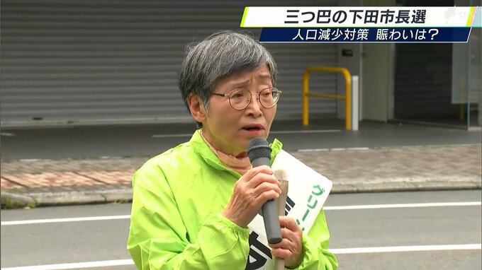市街地の活性化や防災、人口減少など様々な課題を抱えている下田市。3日後に投票を迎える市長選には現職の松木さん、元副知事の土屋さん、元市議の長友さんが立候補しています。共通項が「元県の職員」という松木さん、土屋さん。唯一の女性候補・長友さんによる三つ巴という選挙戦です。