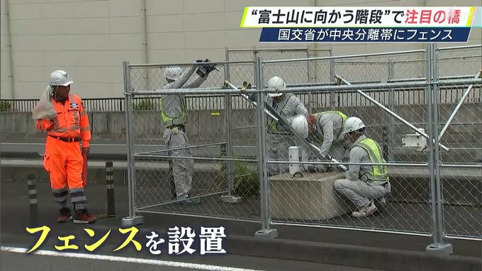 「富士山に向かう階段」として注目され、迷惑駐車などが問題になっている“富士山夢の大橋”。国交省は対策として、中央分離帯の立ち入りを防ぐフェンスを設置しました。