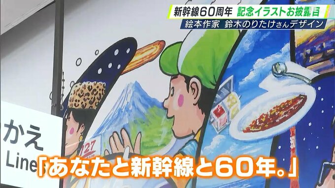 「大ピンチずかん」などで知られる、浜松市出身の絵本作家・鈴木のりたけさんが東海道新幹線の開業60周年を記念したポスターをデザインし、6月25日、特大パネルがお披露目されました。