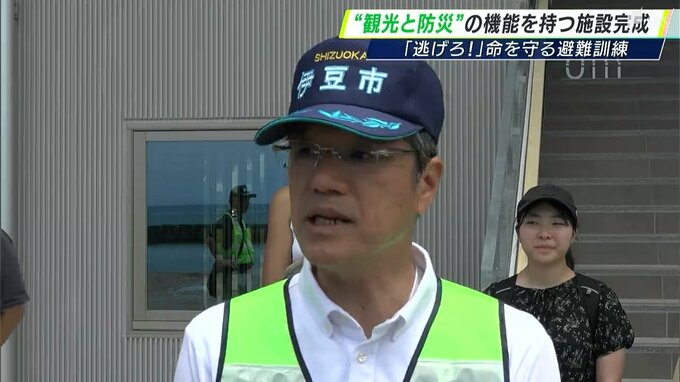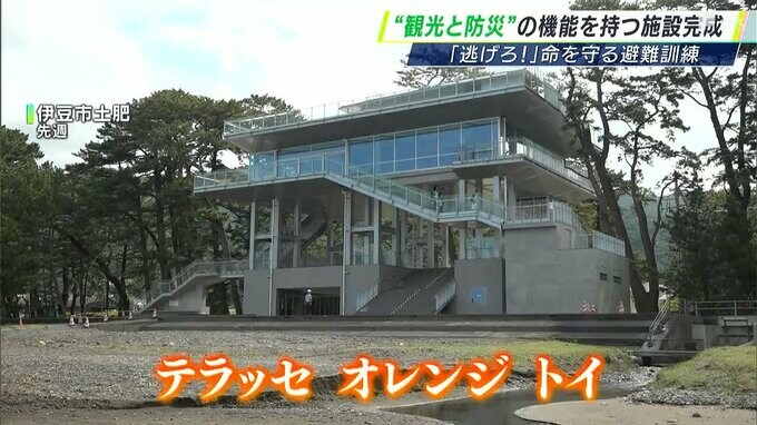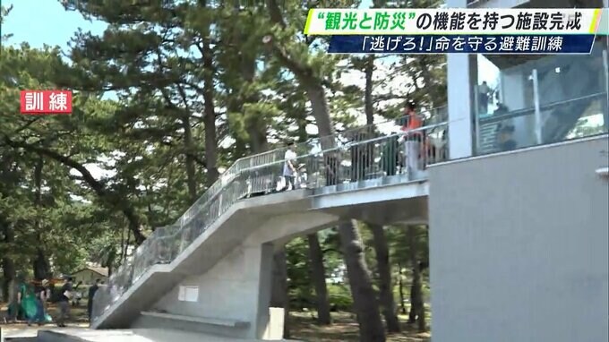 静岡県伊豆市の土肥地区に津波避難タワーと観光拠点の機能を併せ持つ複合施設が完成しました。オープンを前に観光客と住民の避難を想定した訓練が6月22日に行われ、地域全体が防災への意識を高めています。