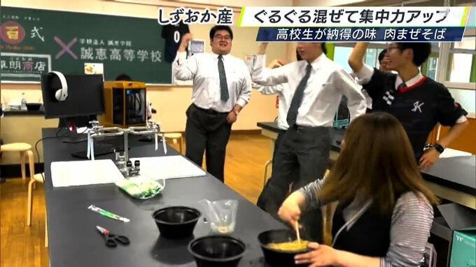 静岡県沼津市の高校で開かれた文化祭。理科室でeスポーツ部の部員が販売していたのは混ぜれば混ぜるほどおいしさが増す「まぜそば」です。