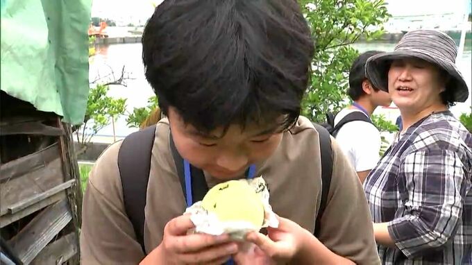 最後に子どもたちは、川島さんが丹精込めて作った桃を試食し、「甘くておいしい」と笑顔を見せていました。