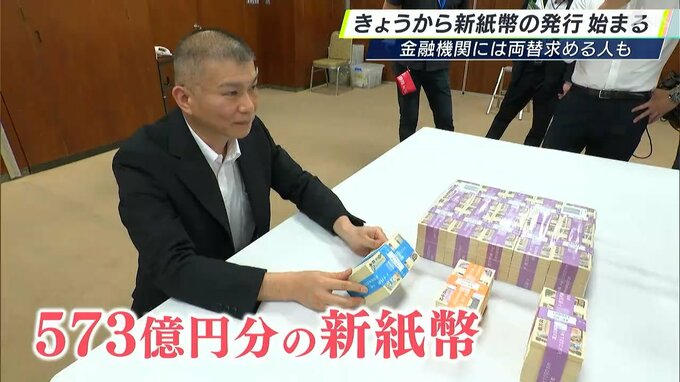 静岡市葵区のしずおか焼津信用金庫本店営業部には、3日昼前に新しい紙幣が到着。店舗内で現金を保管する機械に補充したり、両替に訪れた客を迎えたりするなど、対応に追われました。