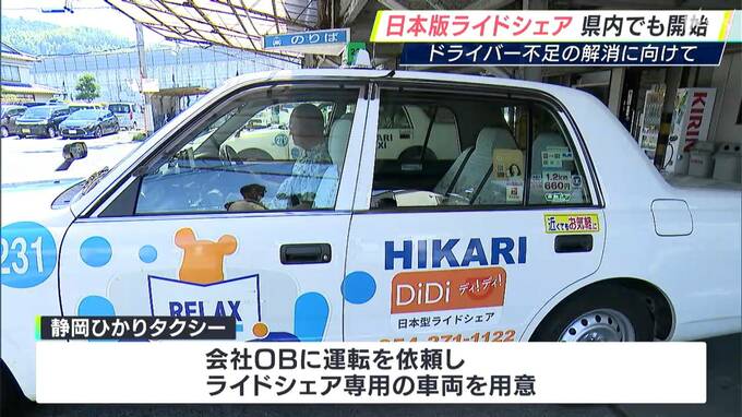タクシーのドライバー不足の解消などに向けて国が導入を進める「日本版ライドシェア」。一般のドライバーが自家用車などを使って、有料で人を運ぶサービスのことで、静岡県で初めて7月5日から始まります。