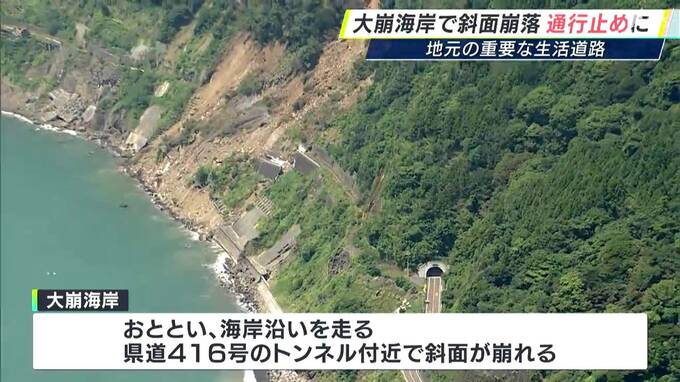 静岡県焼津市の大崩海岸で斜面崩落が発生し、静岡市につながる県道が通れなくなっています。地元住民にとっては大きな痛手で、焼津市が県に早期の対応を求めました。