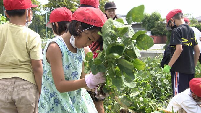 食べることと農業の大切さや楽しさを知ってもらおうと、浜松市の小学校では7月8日、枝豆の収穫体験が行われました。