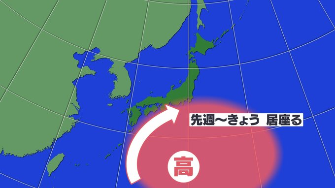 これは高気圧の位置がポイントです。先週から7月8日にかけては南海上に高気圧の位置がありました。高気圧は時計回りに風が吹きますので、静岡県には南西風が吹きやすかったんです。