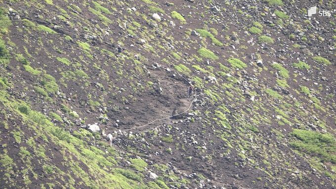「静岡県側山開きの初日、六合目の上の登山道では、多くの登山客が山を登っています」