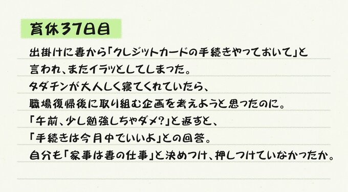静岡放送の前ニュース編集長で現ディレクターの増田哲也(41)が第2子誕生を機に育休を取得し、日々の体験を日誌に書き留めた。専業主婦の妻に家事育児のほぼ全てを任せてきた増田にもたらされた変化とはー。増田とは対照的に夫婦共働きで家事育児を担う同ディレクターの伊豆田有希(41)が日誌を読み、「仕事と育児」について増田と対話した。