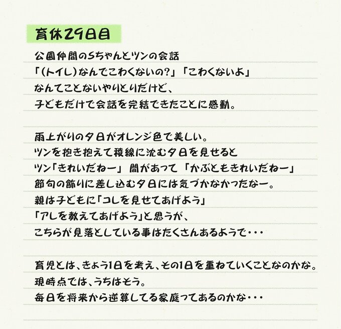 育休終えての感想が「もっと仕事を残さねば」? なぜそうなるんだろう…。我が子に残したいものも仕事なんだ。まぁ、増田の奥さんと子どもたちがそれでいいなら、いいけどね。他人の私がつべこべ言うことでもないしね。それにしても、家族への向き合い方に変化はなかったの?