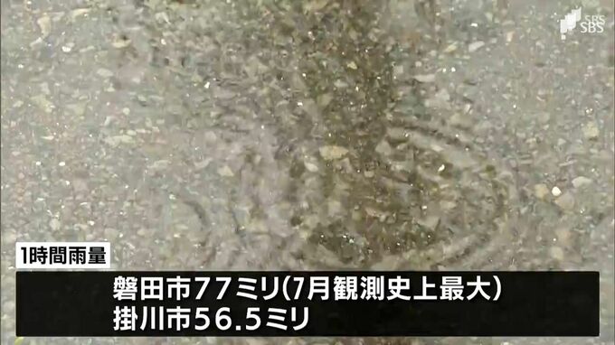 1時間雨量は、静岡県磐田市で7月の観測史上最大の77ミリ、掛川市では56.5ミリなどを記録しました。