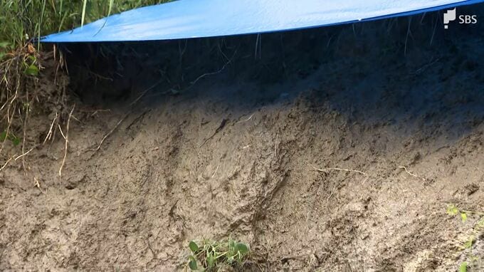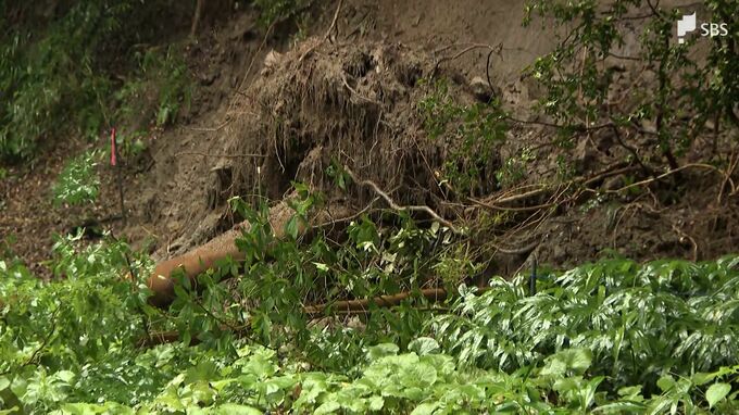 「掛川市千羽にあるこちらの住宅の裏山ですが、大雨の影響で地面が滑り落ちています」