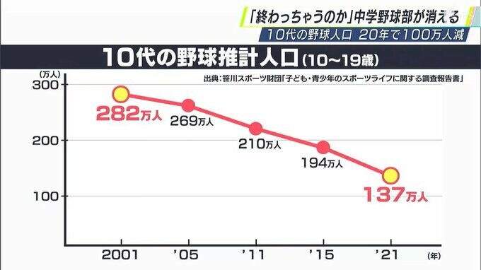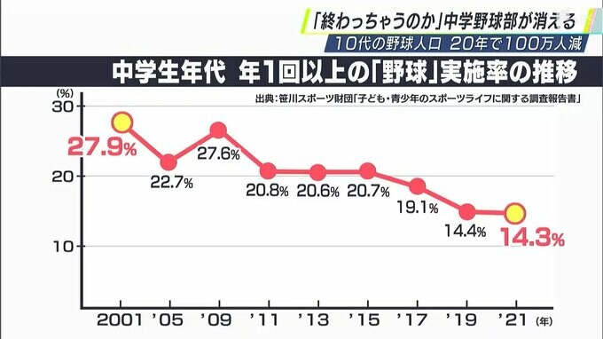 さらに年に1回野球をやったという中学生は半減、確実に野球に親しむ場面がなくなっているというのです。