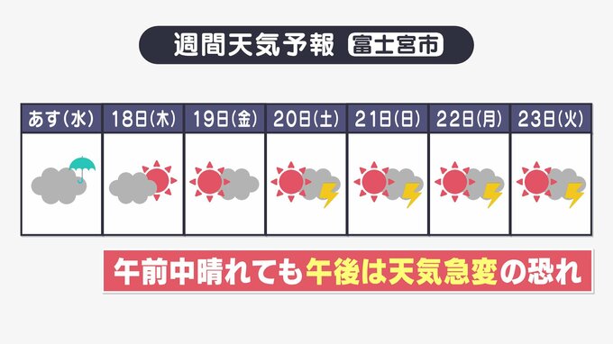 今後、18日以降は前線が離れ、晴れる日が続きますが、午後は大気の状態が不安定になることがあります。午前中晴れていても、午後は天気の急変に気をつけてください。