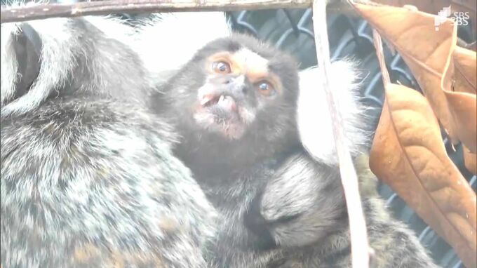 お母さんにぴったりつかまっているのは、サルのコモンマーモセットの赤ちゃんです。