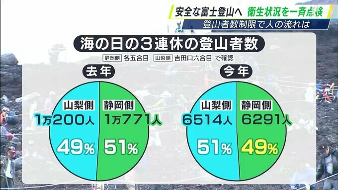 梅雨が明け、これから本格的な登山シーズンを迎える富士山。7月18日は、山小屋の衛生状況の一斉点検が行われました。2024年は、山梨側で登山者数が制限され、規制を設けていない静岡側への流入が懸念されていますが、現状、人の流れは、どうなっているのでしょうか。