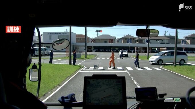 歩行者や一般車両のドライバー役はベテラン職員です。停止を呼びかけても車が止まらないなど、さまざまなシーンを想定しました。