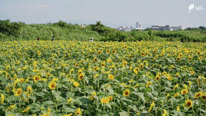 休耕田に広がる大輪の花、見頃は8月上旬まで続くということです。