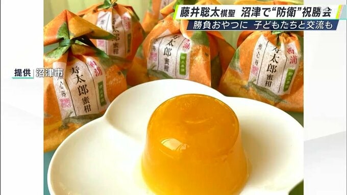 藤井棋聖の対局といえば、毎回注目されるのが「勝負おやつ」。今回、対局は行われませんでしたが、沼津市民が選んだ地元のお菓子、冨久家の「イタリアンロール」と、雅心苑の「寿太郎蜜柑」が手土産として選ばれました。