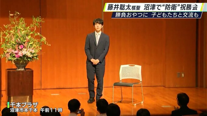 藤井聡太棋聖が第95期棋聖戦でタイトルを防衛したのを記念し、対局が行われる予定だった沼津市で7月23日、交流イベントや祝勝会が開かれました。藤井棋聖は、何度か対局で訪れた沼津御用邸の魅力について語りました。