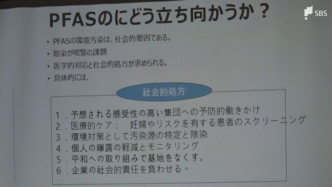 参加した約90人は、小泉名誉教授に「子どもたちに水を飲ませてもいいのか」などと質問するなどして、PFAS問題について理解を深めていました。