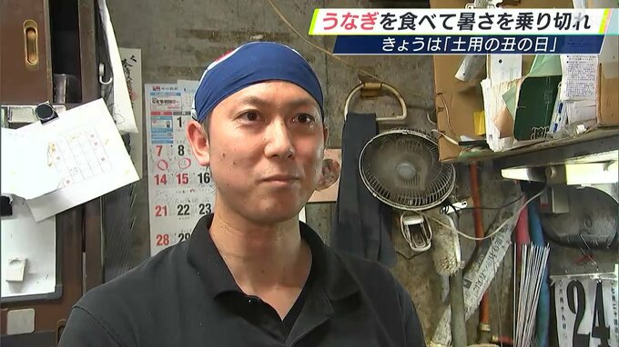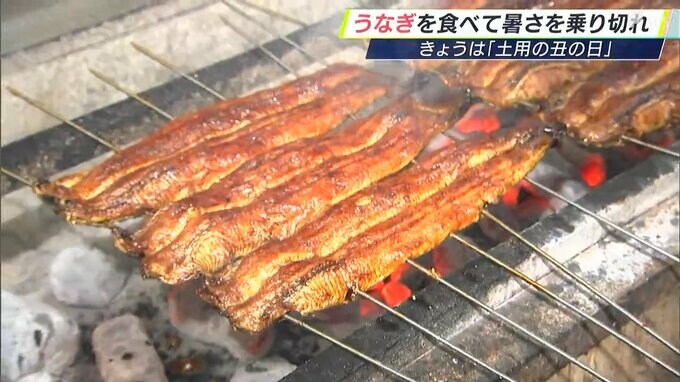 炭火の上で、ジュワっと焼かれるおいしそうなうなぎ。浜松市中央区のうなぎ専門店「かんたろう」では、土用の丑の日の7月24日、普段の3倍のうなぎを用意し、熟練の職人が丁寧に焼き上げていました。