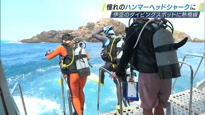 頭の形が「ハンマー」のように見えるサメ「ハンマーヘッドシャーク」。伊豆半島南端の沖に浮かぶ神子元島周辺は、その大群と出会える確率が高い人気のスポットということで、ダイバー向けのツアーに密着しました。